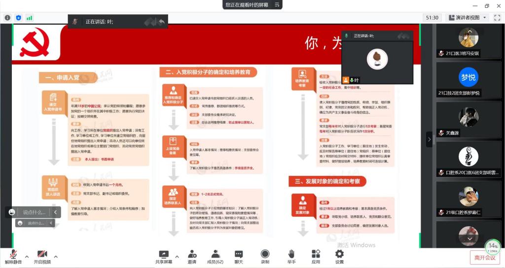 世俱杯官方网站党总支牵头人罗志红给总支全体党员及入党积极分子进行线上、线下授课。党员同志通过《喜迎二十大》党课学习,深刻领会到“两个确立”的决定性意义,表示要发扬历史主动精神,趁势而上,砥砺前行,以实际行动迎接党的二十大召开。入党积极分子进行线上《你,为什么入党》党课学习,通过党史学习了解到“中国共产党为什么能”,中国共产党的本质是什么,进而掌握共产党员的标准及如何加入中国共产党。