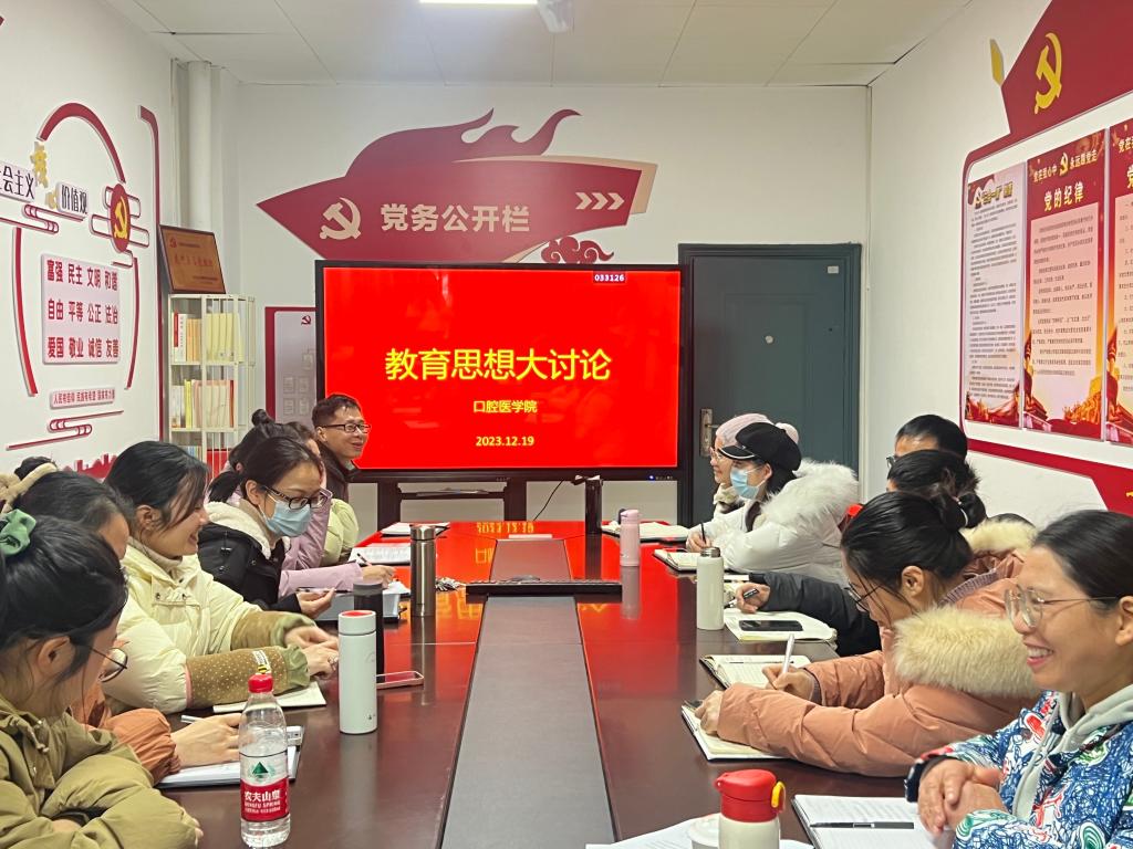 为深入学习贯彻习近平总书记考察江西重要讲话精神,深入学习贯彻习近平总书记关于教育的重要论述,落实立德树人根本任务,深入推进教育教学改革,进一步提高人才培养质量,根据《世俱杯官方网站“教育思想大讨论”活动工作方案》文件要求,12月19日下午,口腔医学院组织开展“教育思想大讨论”活动,全体教职工参加会议。
