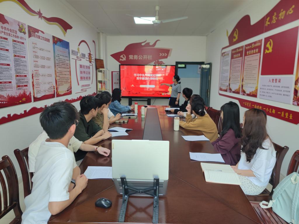 为深入贯彻落实全面从严治党要求,进一步加强党风廉政建设,增强廉洁自律意识,学生党支部书记叶燕平于4月18日为学生党员、入党积极分子讲党课《学习中央八项规定精神,筑牢廉洁自律防线》。