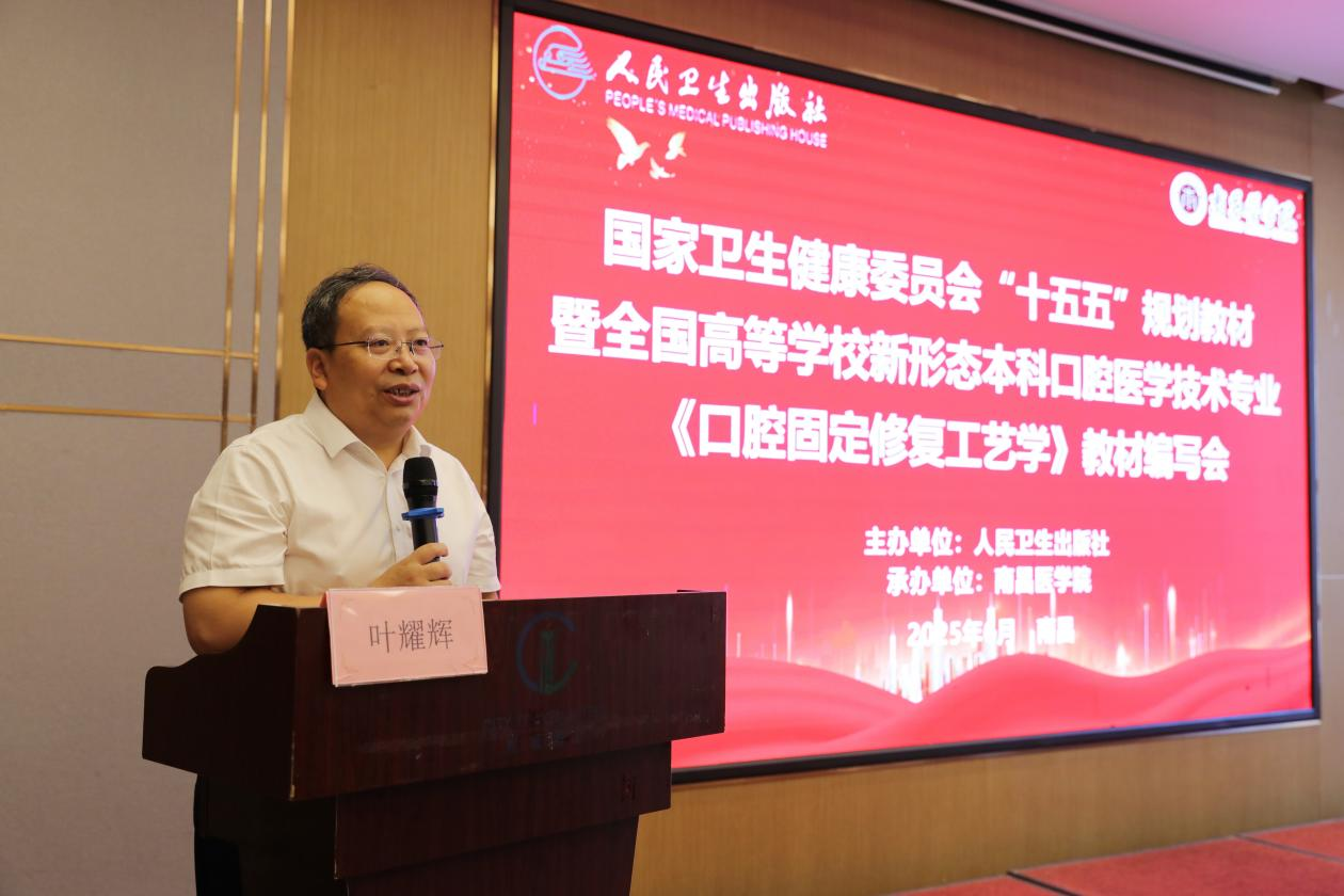 6月16日至18日,由人民卫生出版社主办,南昌医学院承办的国家卫生健康委员会“十五五”规划教材暨全国高等学校新形态本科口腔医学技术专业《口腔固定修复工艺学》教材编写会在我校召开。世俱杯官方网站党委委员、副校长叶耀辉出席会议,来自全国30余所知名高校及行业专家学者齐聚一堂,共同研讨教材编写的相关事宜。