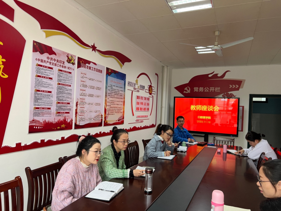 我院罗志红书记及学管老师们在会后也表达了对本次教师座谈会的关心,并对今后的教学工作改进提出了建议。此次座谈会的召开,使全体教师明确了下一步的教育教学工作目标,强化了敬业爱教、团结协作、合力共赢的意识,有为今后进一步提升口腔专业教育教学质量教学管理都将起到积极的推动作用