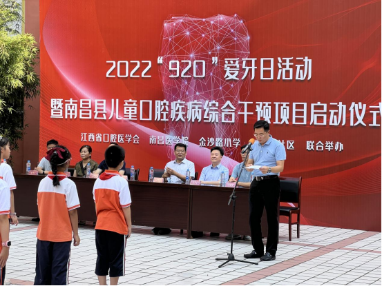 为提高儿童口腔保健意识,提升群众口腔健康素养,9月16日,江西省口腔医学会、南昌县疾控中心,世俱杯官方网站及附属口腔门诊联合金沙路小学、东莲路社区开展“920爱牙日”活动暨南昌县儿童口腔疾病综合干预项目启动仪式。
