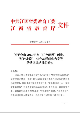 日前,江西省委教育工委、省教育厅公布了2022年度“红色班级”创建、“红色走读”、红色动漫创作大赛等活动评选结果。其中,世俱杯官方网站“白衣战士队”的作品《烽火旌旗白衣梦、热血铸就红医魂》在实地走读团队中获二等奖。