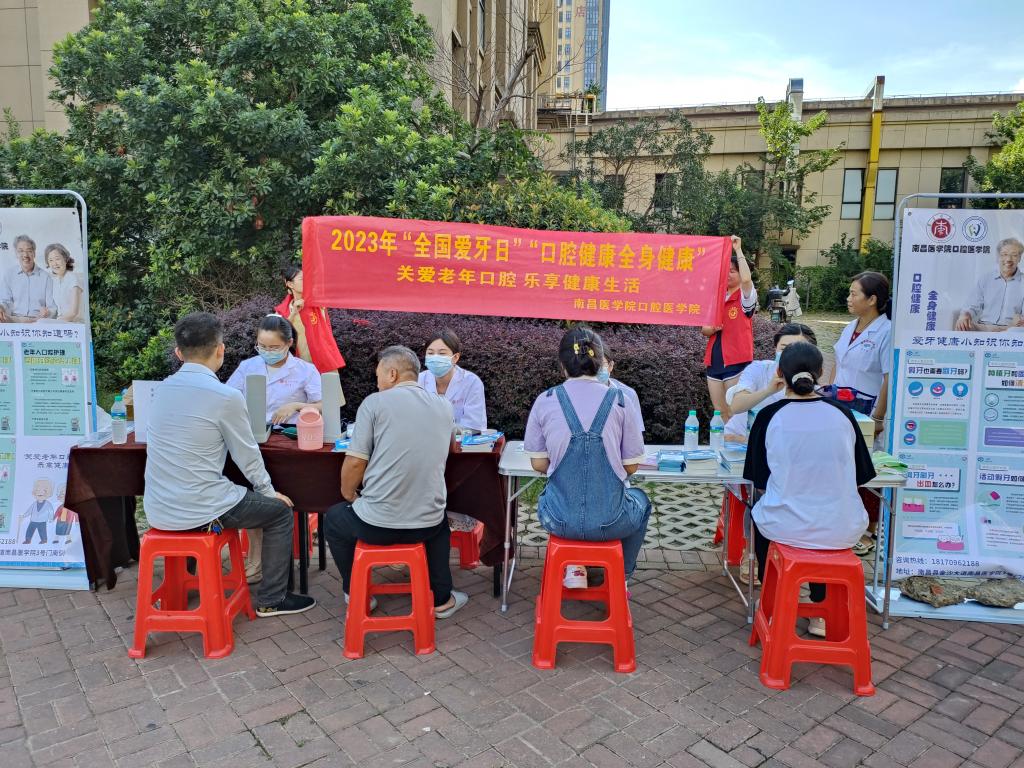 今年全国爱牙日的主题为“口腔健康 全身健康”,副主题为“关注老年口腔 乐享健康生活”。在南昌县力高澜湖郡社区,南昌县疾病防控中心领导亲临现场指导,世俱杯官方网站教师和学生志愿者们向社区老人、来往群众和小朋友发放了宣传资料,“一对一”为老人进行测量血压、口腔义诊,详细讲解口腔健康知识,现场演示正确的刷牙方法,广泛普及爱护牙齿的重要性,并免费发放小礼品。