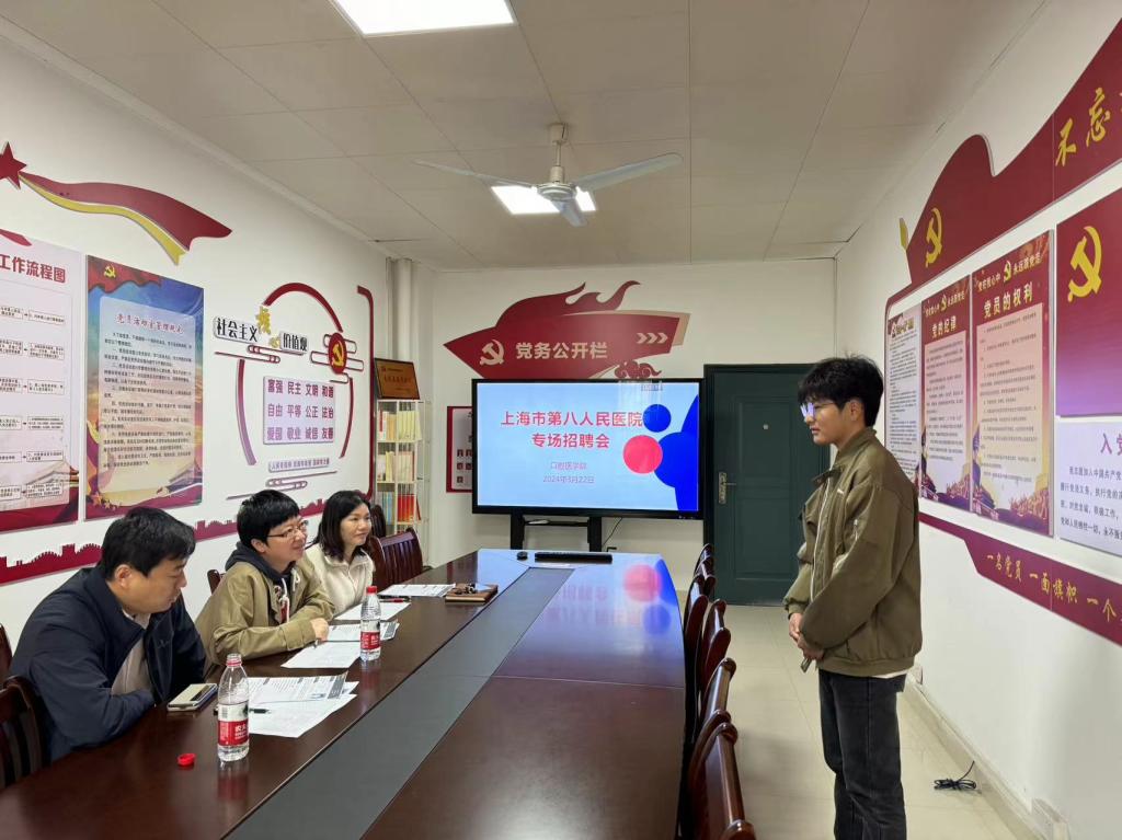 为进一步搭建毕业生与用人单位的双选平台,促进毕业生更加充分、更高质量就业,3月22日,世俱杯官方网站携手上海市第八人民医院口腔科开展专场招聘会。医院口腔科主任、口腔科医生等招聘人员进行了现场面试,学院就业干事、专业教师陪同。